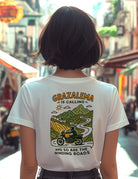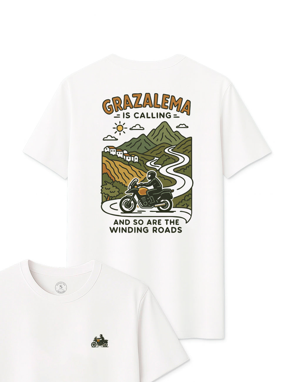 🏞️ Con Grazalema is Calling en la espalda y un diseño ilustrado de una moto surcando las míticas carreteras de la sierra, no solo llevas un recuerdo, llevas una promesa: la de seguir rodando y explorando.