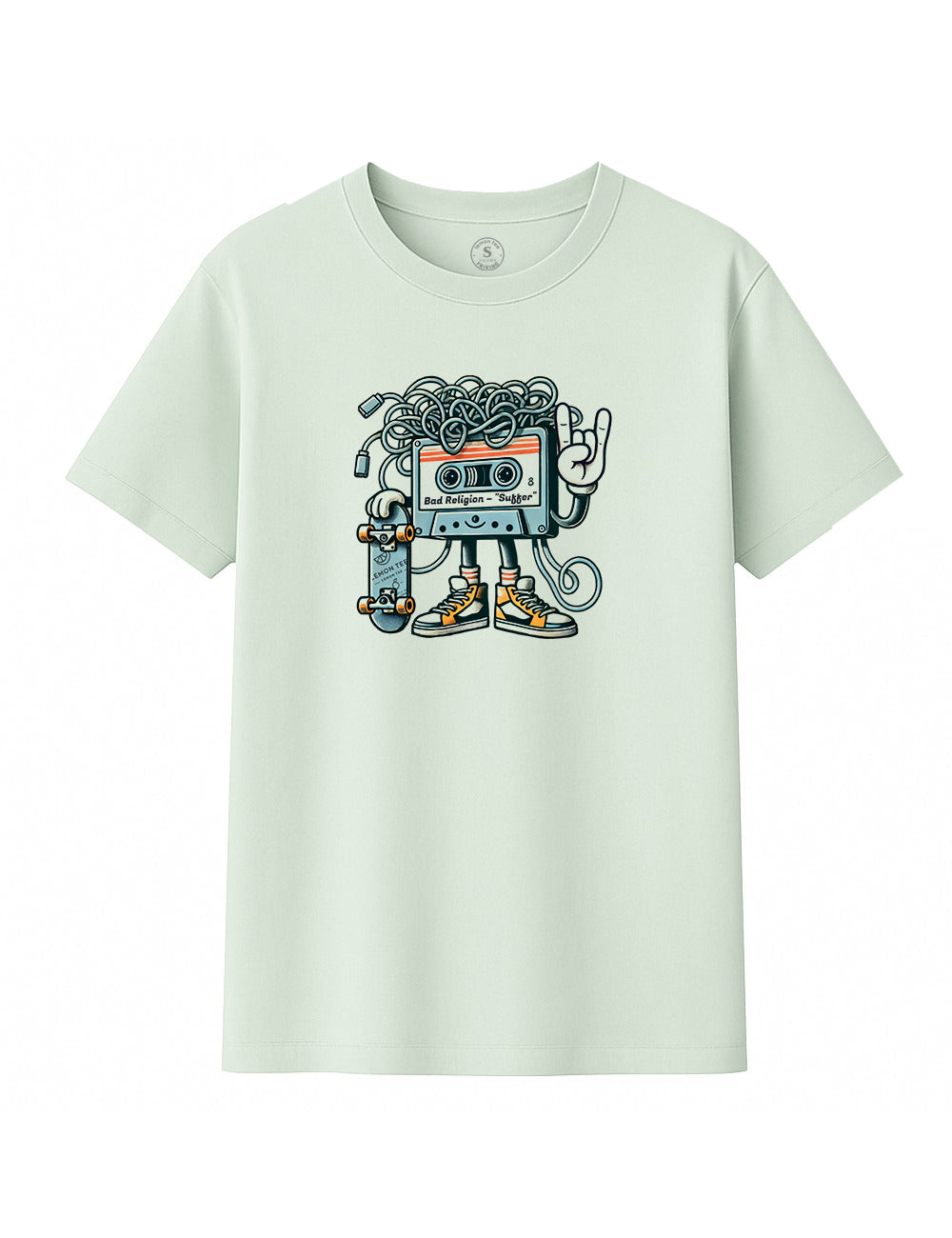 Si lo tuyo es patinar y el punk corre por tus venas, esta camiseta original es para ti. Con un diseño que mezcla lo mejor de la cultura skate y el vibe retro de las cintas de cassette, esta prenda rinde homenaje a los días en que te ponías los auriculares y dejabas que bandas como Bad Religion fueran la banda sonora de tus trucos. La cinta "Suffer" cobra vida, lista para rodar con su patineta y su actitud. ¡Perfecta para esos días de sol en el skatepark, donde solo importan el ritmo y las ruedas! Ponte esta camiseta de skate y deja claro que el estilo callejero sigue siendo ley. ¿Listo para deslizarte por la ciudad?.