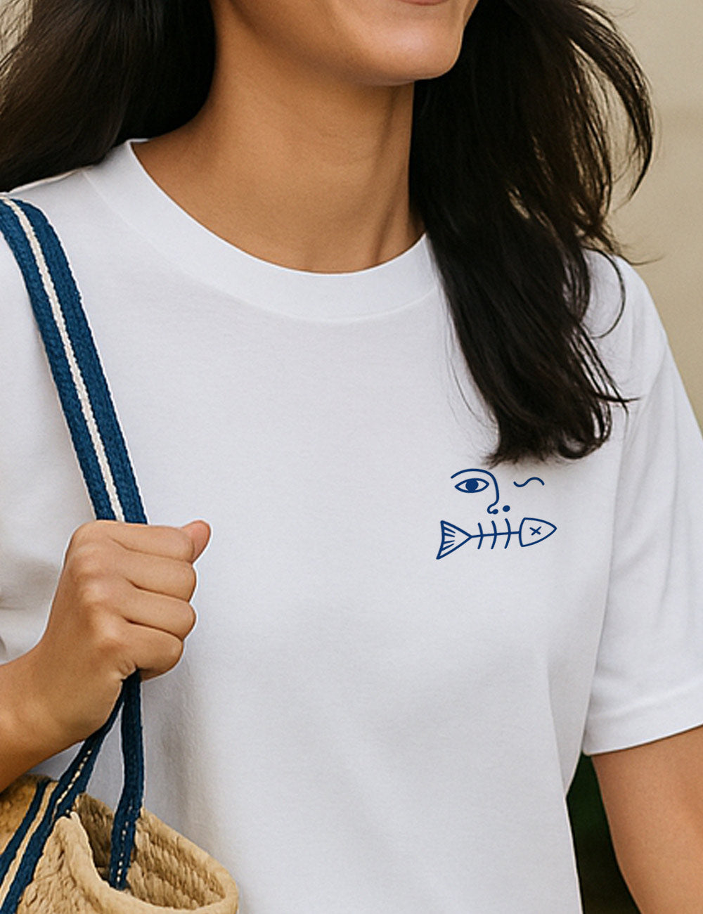 Perfecta para quienes aman el mar, el arte, el sol y el salero. Estampada a tamaño mini en el corazón, ideal para combinar con estilo mediterráneo o un paseo con brisa de Levante.