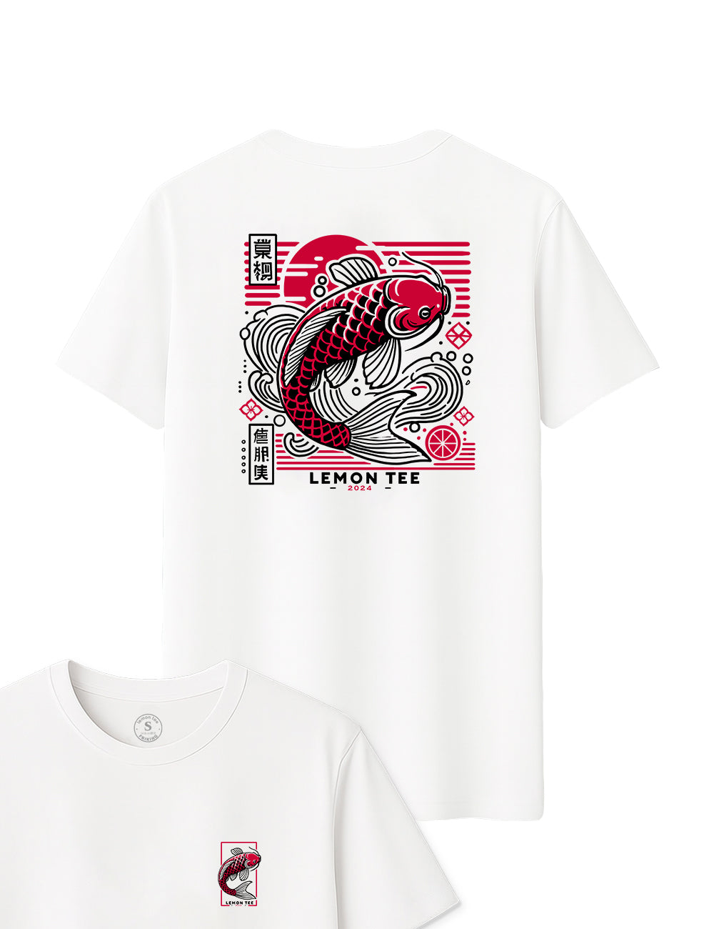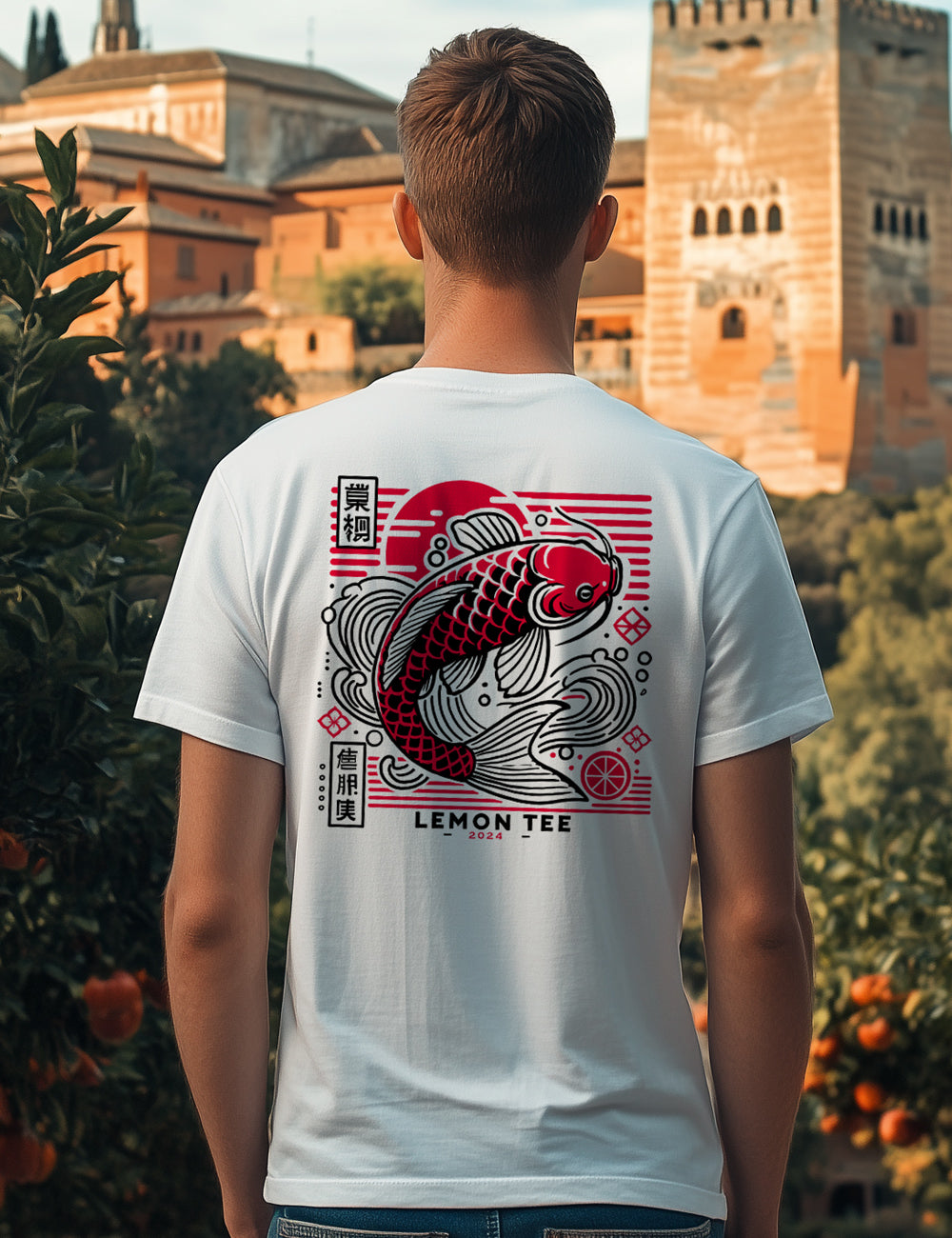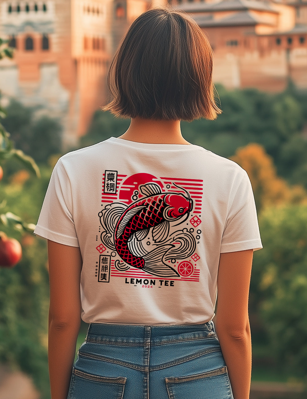 Konnichiwa, estilo y tradición se encuentran en esta camiseta original. Inspirada en el arte japonés, esta camiseta presenta un diseño impactante de una carpa Koi en la espalda, símbolo de fuerza, perseverancia y buena fortuna en la cultura japonesa. Con un toque moderno y colores vibrantes, esta camiseta captura la esencia del estilo japo con un giro fresco y actual.