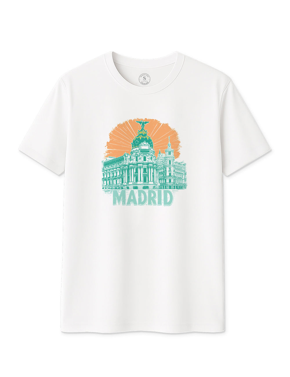 Lleva Madrid contigo: Esta camiseta original rinde homenaje al emblemático Palacio Real de Madrid con un diseño gráfico lleno de estilo y personalidad. Perfecta para los amantes de la capital, combina historia y modernidad en una prenda cómoda y versátil. Ideal para quienes buscan camisetas originales, camisetas de turismo y un recuerdo único de Madrid. ¡Una pieza que mezcla moda y pasión por la ciudad!