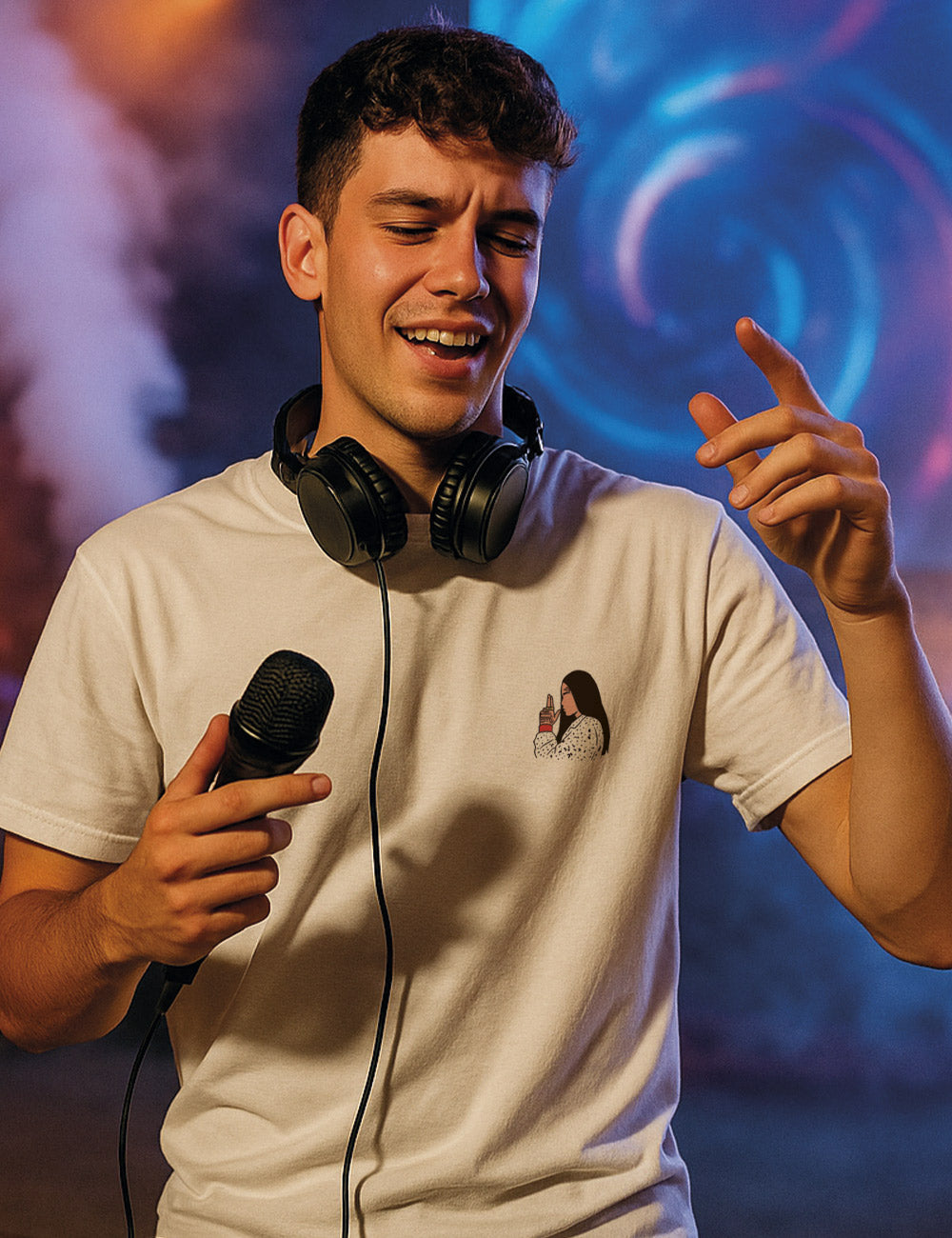Aquí no hay medias tintas. Esta camiseta rinde tributo a una artista que escupe barras como metralla y representa con orgullo todo lo que es ser única, libre y potente. El diseño, sutil pero directo, la muestra en su esencia: actitud, estilo y el micro bien firme.