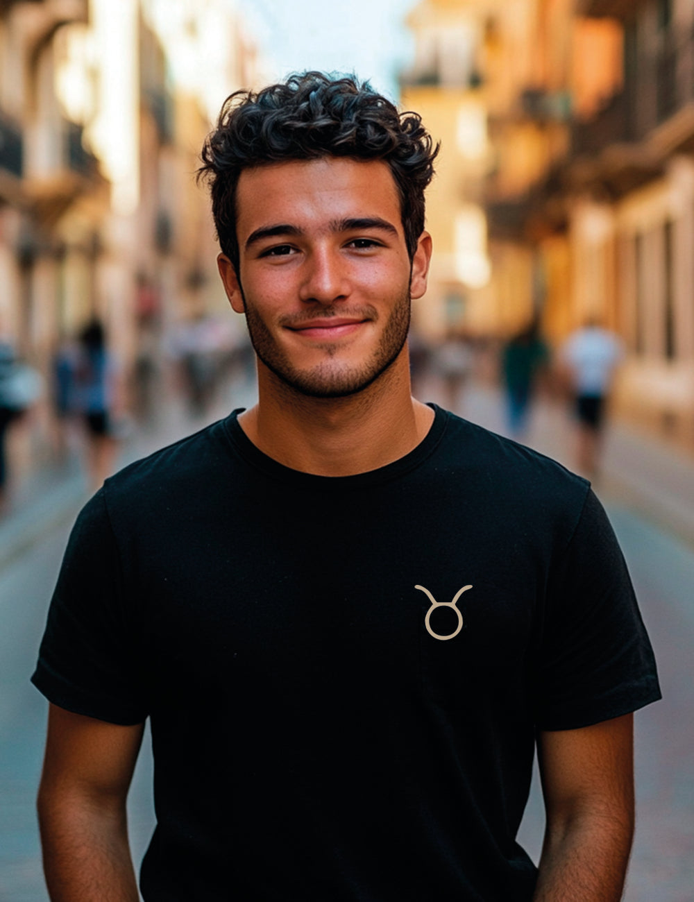 Esta camiseta negra con corte clásico grita Aries desde el primer vistazo: símbolo minimalista al frente y un diseño trasero que representa El Emperador del tarot, el arquetipo perfecto de liderazgo, fuerza y fuego interior.