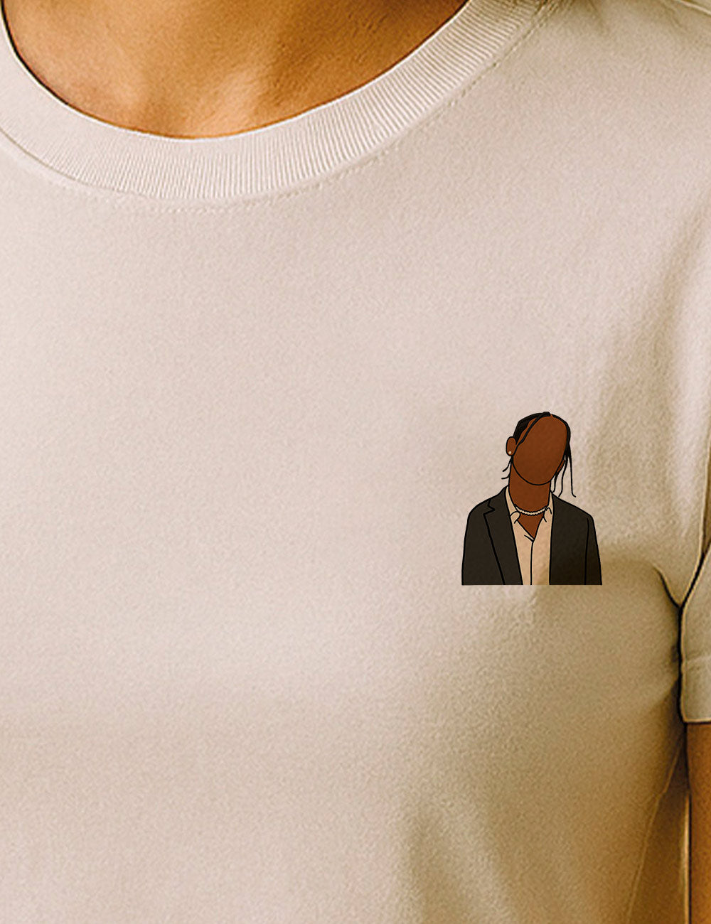 Inspirado en el estilo inconfundible de Travis Scott, esta ilustración minimalista captura su esencia sin mostrar su rostro.